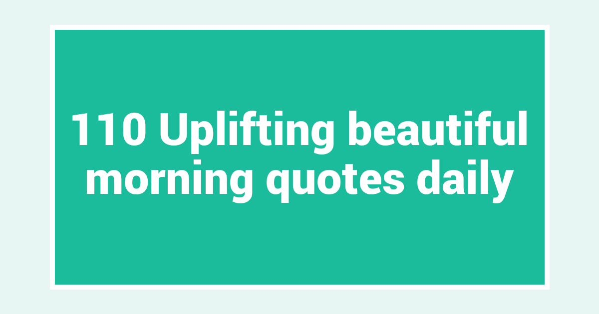 • I sincerely hope that these 19 uplifting beautiful morning quotes lift your spirits and set a positive tone for the day ahead.