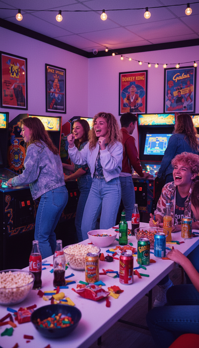Transform a space into a nostalgic arcade with classic games like Pac-Man, Donkey Kong, and pinball machines. Renting actual arcade cabinets or using emulators on large screens can create an authentic experience. Encourage guests to dress in 80s or 90s attire for a full throwback vibe. Serve retro snacks like popcorn, candy dots, and soda in glass bottles to complete the theme. This offers endless competitive fun and fantastic photo opportunities.