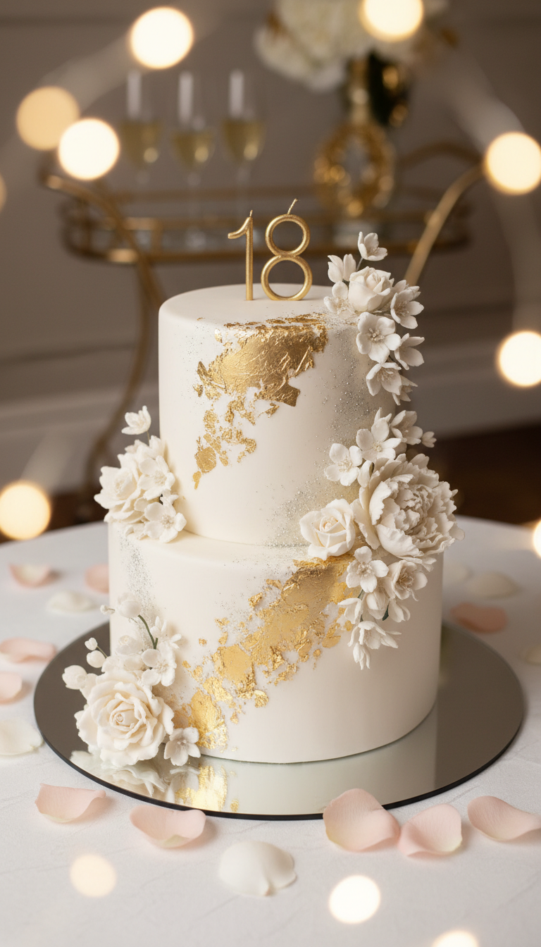 Celebrate this significant milestone with a touch of elegance and sophistication. A multi-tiered cake adorned with edible gold and silver leaf, glitter, and perhaps some delicate sugar flowers or geometric patterns, exudes luxury. This opulent design signifies the preciousness of the occasion and the exciting, sparkling future ahead. It’s perfect for a formal dinner or a chic cocktail party, making the birthday person feel truly special and regal on their big day. The shimmering details catch the light, creating a dazzling focal point.