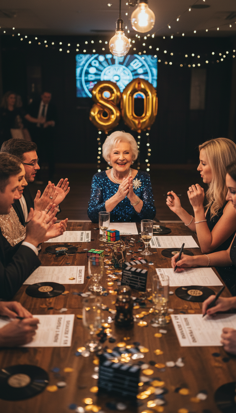 Prepare cards with titles of classic movies, famous historical events, or iconic figures from the past 80 years. Divide guests into teams and have them act out the clues without speaking. This timeless game is excellent for all ages, promoting laughter and creative expression. It’s especially fun when different generations try to interpret clues from eras they might not be as familiar with.