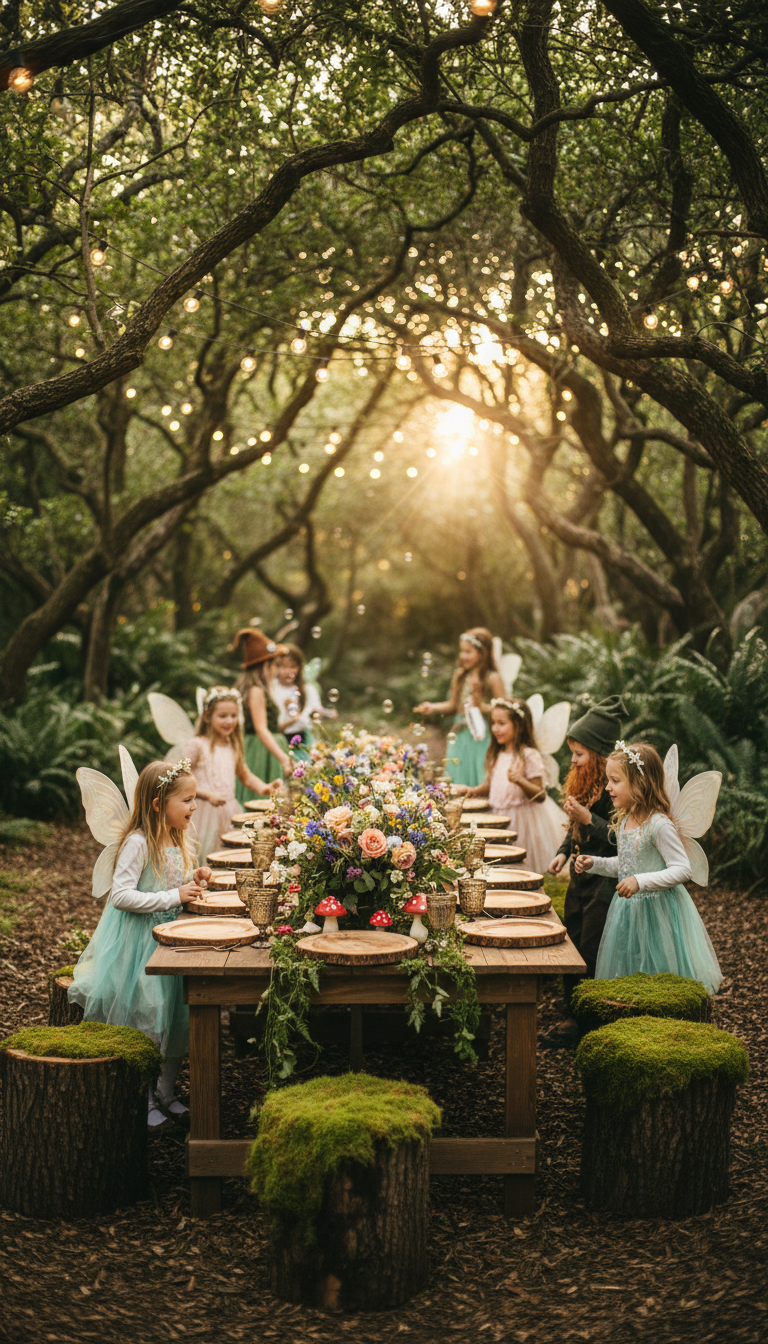Transform your party space into a magical woodland with lush greenery, fairy lights, and mossy accents. Hang paper lanterns like fireflies and drape sheer fabrics to mimic misty glades. Scatter plush forest creatures and create a photo booth with flower crowns and gnome hats. This theme sparks imagination and invites little ones into a world of wonder and discovery, perfect for a whimsical adventure.